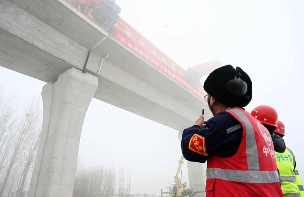 12月30日,在位于河北霸州經(jīng)濟(jì)開(kāi)發(fā)區(qū)的雄安新區(qū)至北京大興國(guó)際機(jī)場(chǎng)快線(簡(jiǎn)稱“京雄快線”)橋梁工程施工現(xiàn)場(chǎng),最后一榀箱梁精準(zhǔn)入位。這標(biāo)志著京雄快線項(xiàng)目橋梁工程全線貫通。